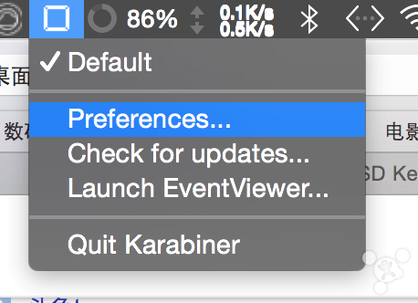 安装完成后桌面上菜单栏会有一个正方形图标,点击后选择『pereference』