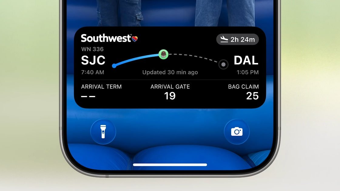 但是当考虑到 boarding passes中的Live Activities功能时,一切都会发生变化。现在有一个小部件显示当前航班状态(例如,它何时着陆),飞机到达的terminal和行李提取台编号,航空公司信息,航班号等。这与受欢迎的航班跟踪应用Flighty提供的Live Activities非常接近。