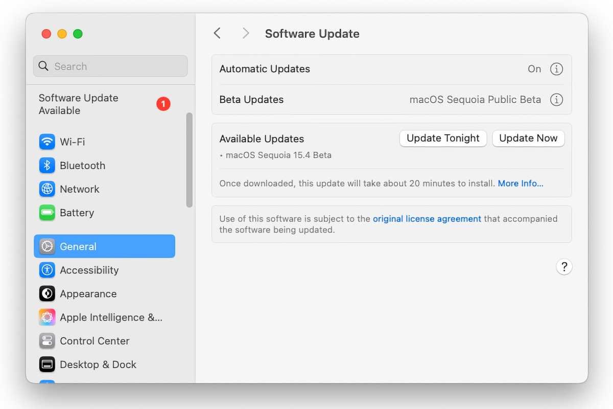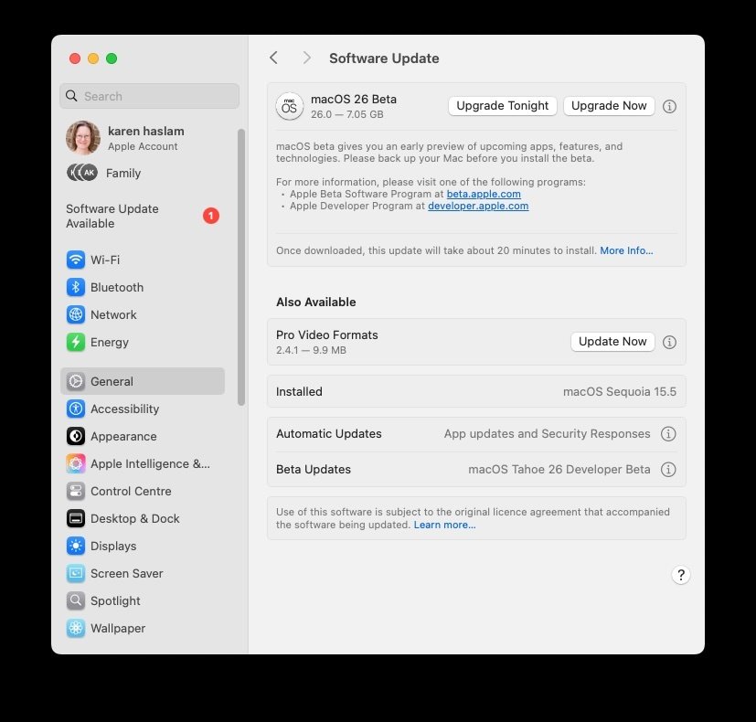现在您运行的是Beta版本,软件更新将自动通过到Mac中,您只需点击即可安装。