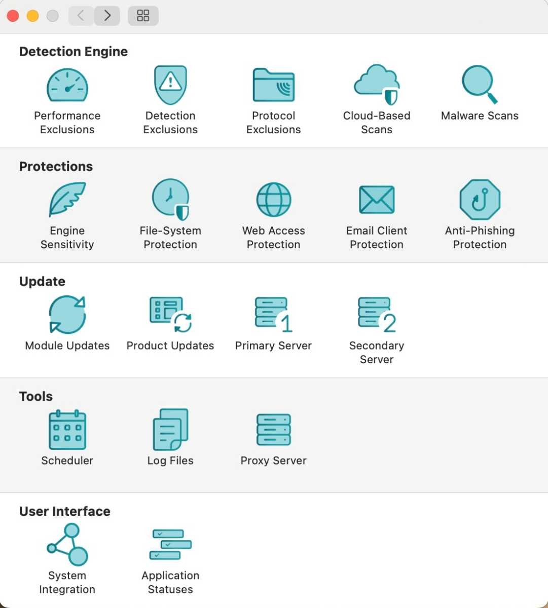 在Mac的设置菜单中有很多可以做的事情。该应用允许创建黑名单和白名单、调整检测级别和敏感度、访问日志和代理服务器、对新卷进行反应以及提供高度定制化。