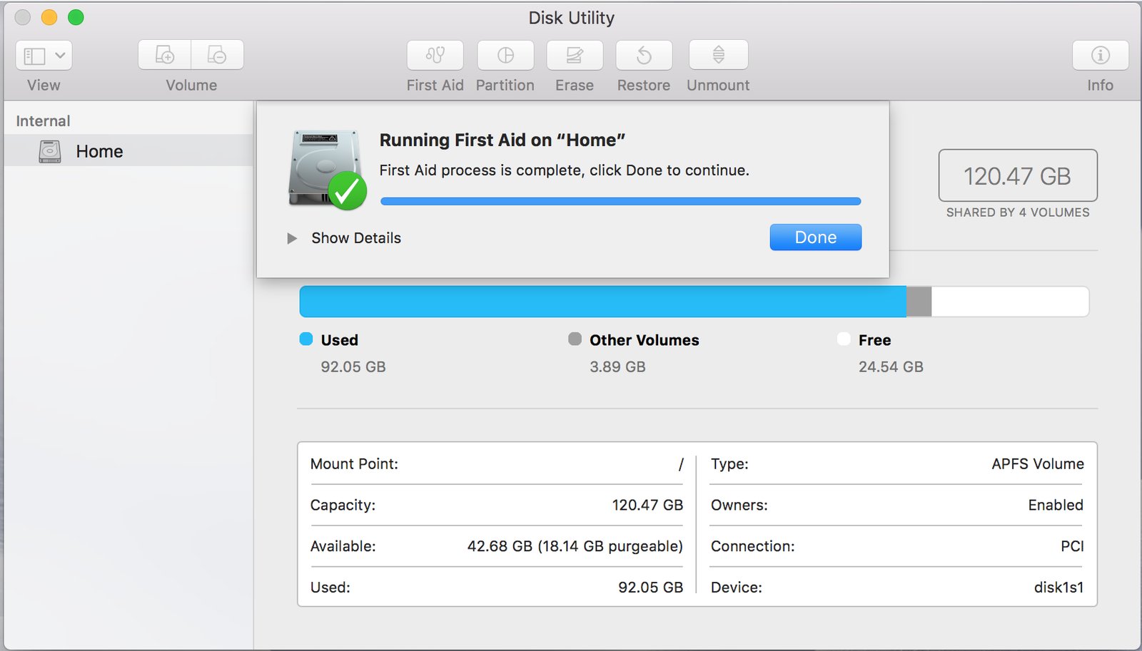 - 如果在过程中,Disk Utility检测到任何问题,并且可以轻松修复,则应该会很快解决问题。