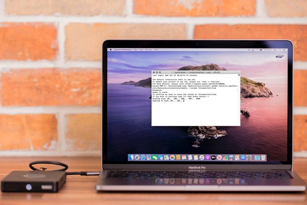 对于较老的Intel处理器Mac,插入启动驱动器(按照上面链接中的说明设置)并按住Option键。然后选择外部启动型驱动器。对于Apple-silicon Macs,按住电源按钮直到可启动的硬盘显示出来,并选择它作为启动盘。