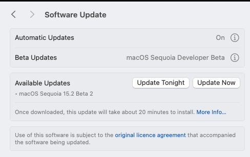 安装macOS Sequoia非常简单。打开系统设置,在“一般” > “软件更新”中找到并点击;macOS会检查是否有可用更新,并引导你完成安装过程。我们已经在我们的macOS更新指南中解释了具体的步骤。如果你已经启用了自动更新功能,操作会更简单——你可以从同一页面开启。