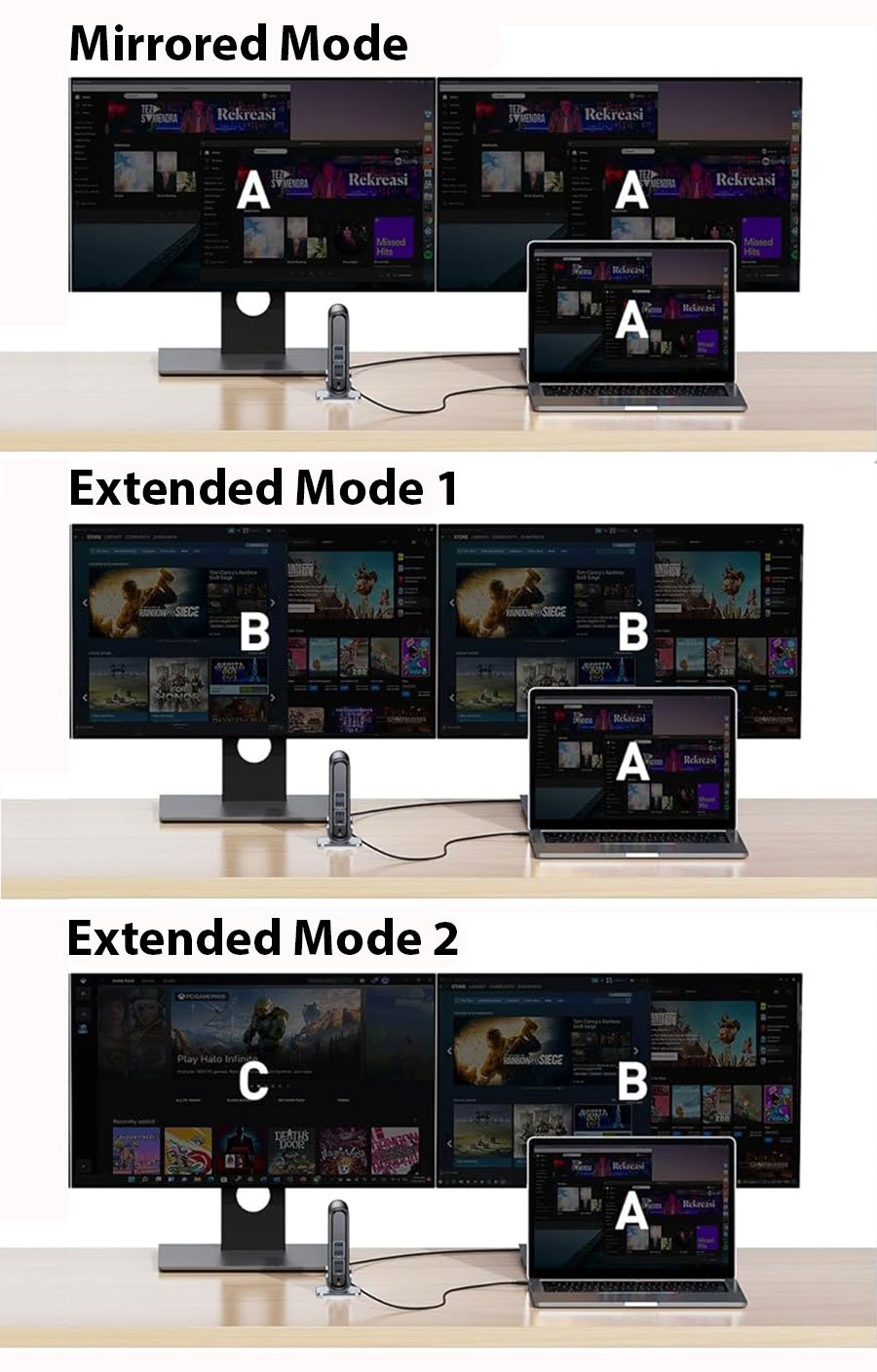 - 支持M1/M2/M3 MacBook双屏输出