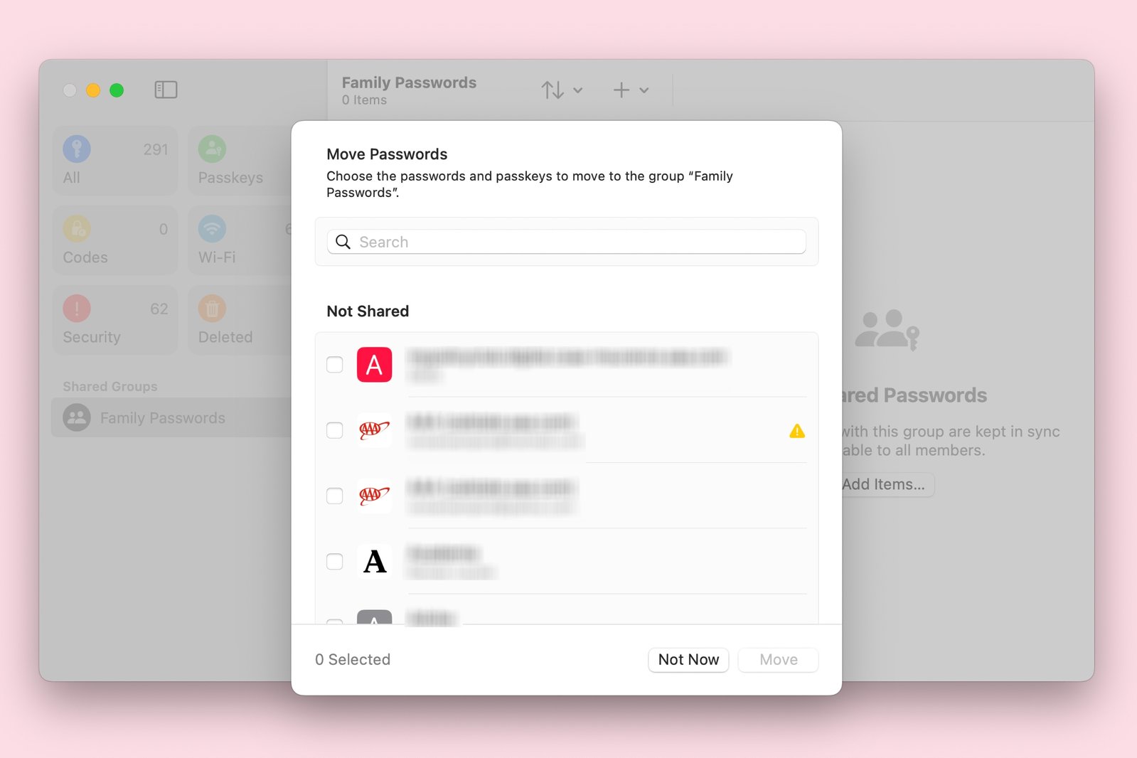 通过设置 > 家人共享 > 推荐功能 > 设置家庭密码创建共享群组,选择需要共享的密码项目。