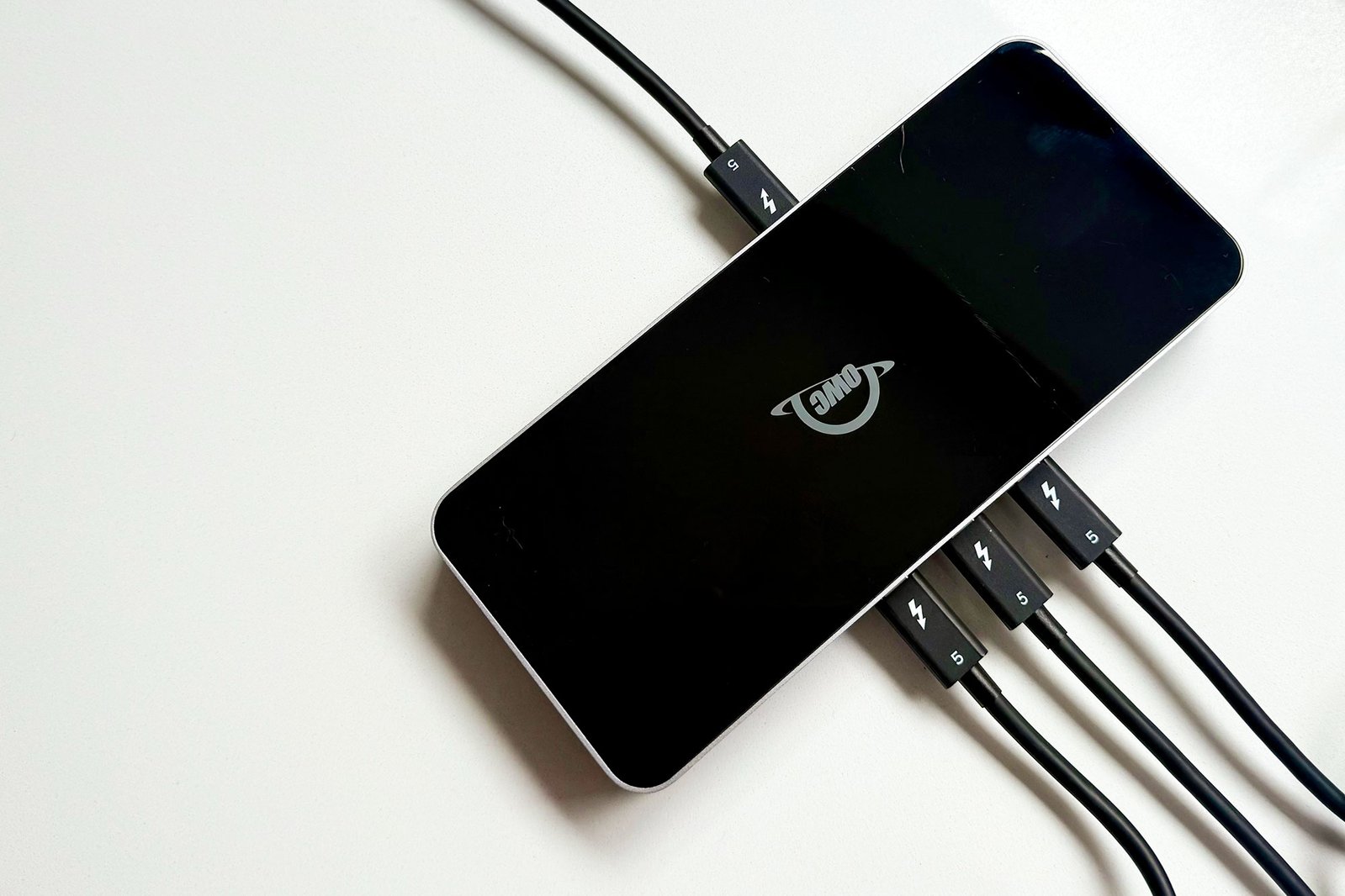 OWC Thunderbolt 5扩展坞较TB4款更显方正,保留铝制外壳配亮黑顶盖。虽然光面设计时尚,但易留划痕,建议置于桌面固定位置使用。