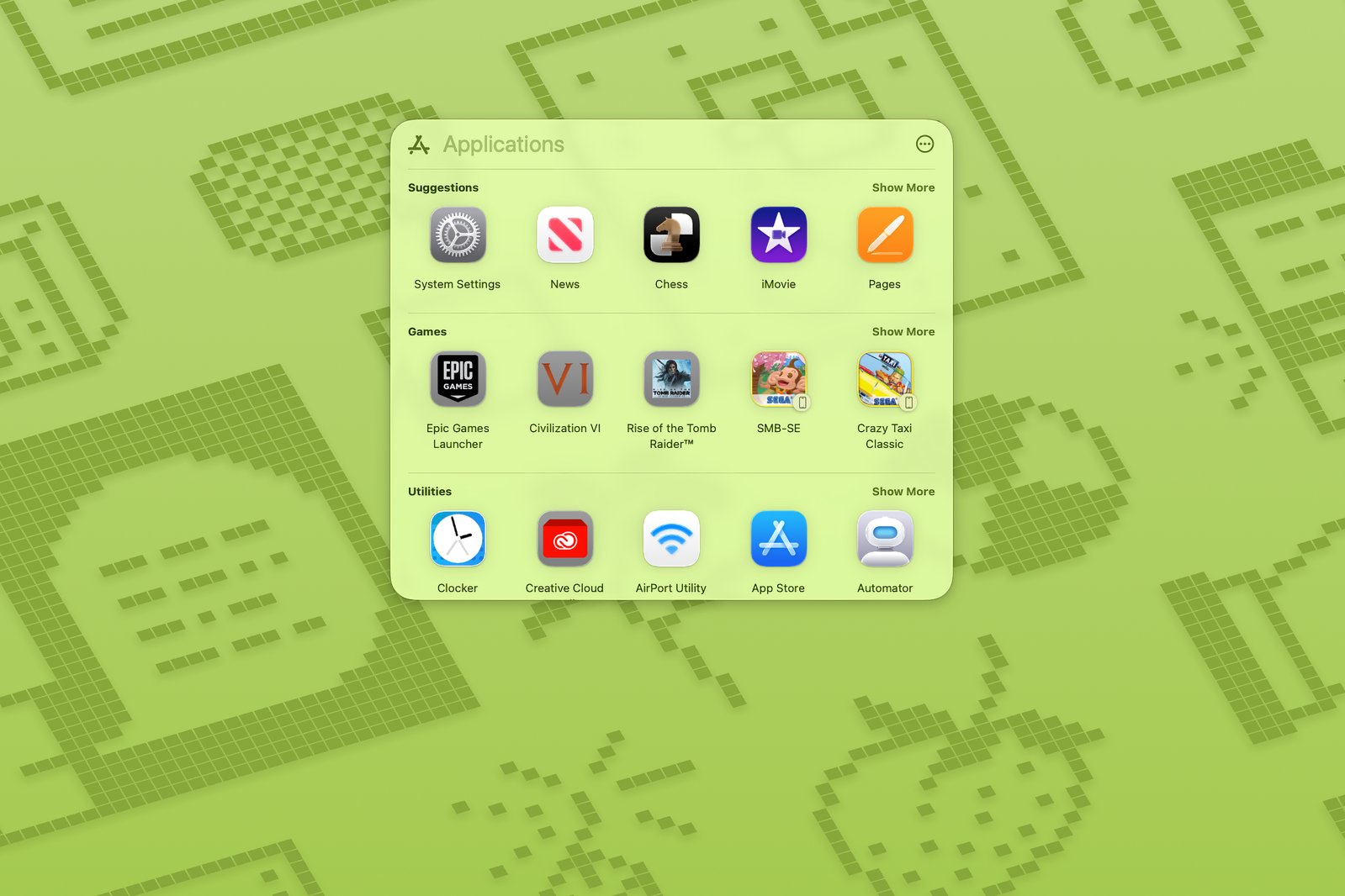 Launchpad是苹果早期尝试统一Mac和iPhone操作系统UI元素的成果。它基本上将iPhone主屏幕带到了Mac上——两者的工作方式相同。通过Launchpad,您可以自定义包含应用程序的不同页面,例如专门用于视频编辑工具或游戏的页面。您还可以创建文件夹来归类显示在Launchpad页面上的应用。这些功能在Tahoe的"应用"中都无法实现。