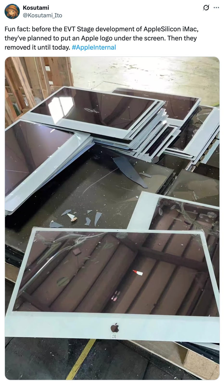 爆料中"后来他们移除了这个设计直到今天"的表述也引发疑问:这是暗示新款M5版iMac将恢复标志?还是指这张M1原型机图片此前从未公开?