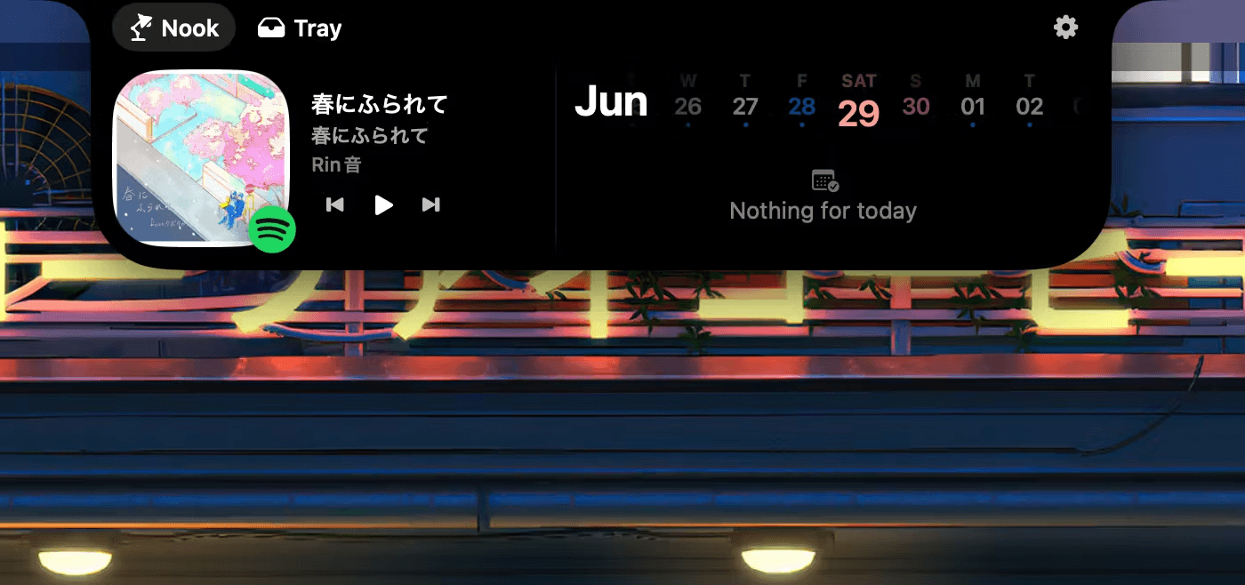 NotchNook 1.5.1的开发团队深入理解了Mac用户对系统美学一致性的严苛要求,创造了一套无缝融入macOS视觉语言的设计方案。软件采用模糊透明背景与动态色彩适应技术,能够根据当前桌面壁纸和系统主题自动调整Nook区域的视觉效果,确保无论是深色模式还是浅色模式下,这一新增的功能区都不会显得突兀。与那些简单粗暴地"填平"刘海的解决方案不同,NotchNook选择了更高明的处理方式——将硬件限制转化为交互机遇,使刘海成为连接用户与系统的动态门户。