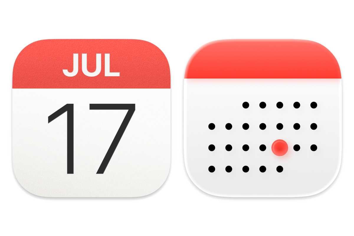 日历:macOS Sequoia(左)与macOS Tahoe(右)。