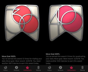 当卡路里消耗分别达到日标的2倍、3倍或4倍时获得。调低每日目标可轻松达成。