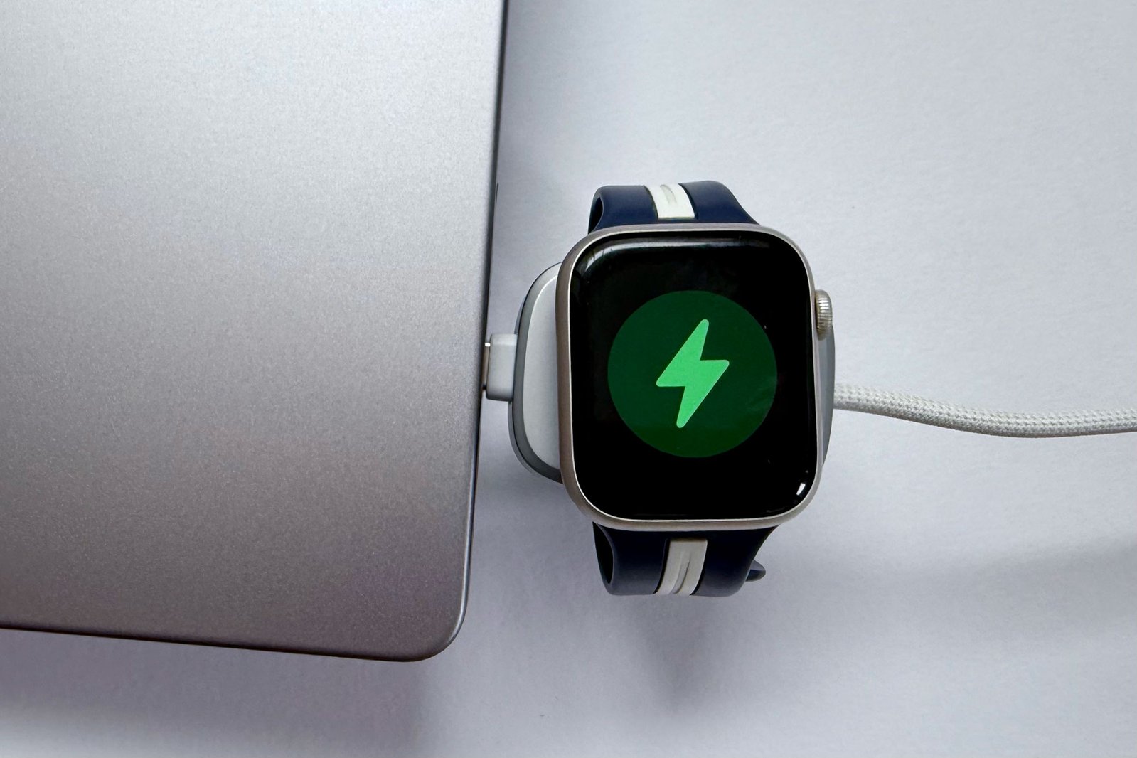 当你的MacBook保持充电时,你可以摘下手表挂在充电板上,或者把AirPods充电盒放在那里。当然,你不需要同时为两个设备充电,它可以完美地作为一根标准USB-C线缆使用,或者只使用充电盘为设备充电——但当你需要时,额外的功能就在那里。