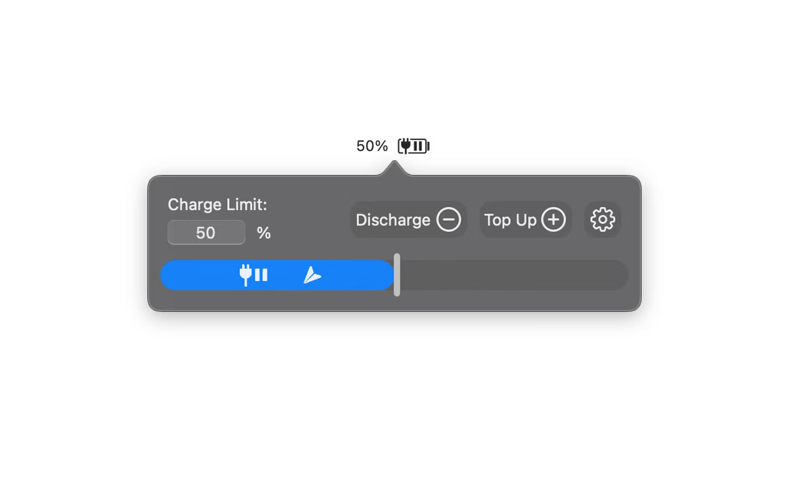 配合充电限制的则是放电(Discharge)功能。即使插着电源,启用此功能后MacBook也会自动切换到电池供电,并将电量消耗到你设定的健康百分比。这在不小心充电过头后特别有用,无需手动拔掉电源线。