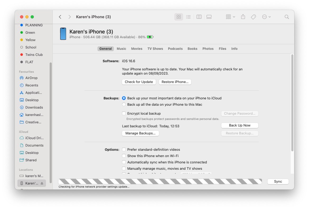 如果 iPhone 上没有足够的空间,通过“访达”(或 PC 或旧版 Mac 上的 iTunes)下载和安装 iOS 是更新 iOS 的好方法。