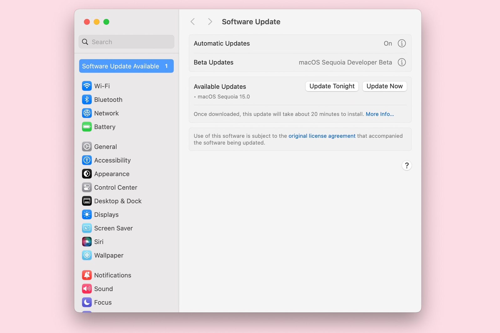 这可能会有所不同,具体取决于用户的互联网连接以及有多少人也在尝试获取更新。例如,四年前我们尝试更新 macOS Big Sur 时,Mac 显示下载 11.98GB 的文件需要 10 小时。2022 年升级到 Ventura 时,下载量为 6.37GB。因此,请准备好等待 Sequoia、Sonoma、Ventura、Monterey 或任何其他版本的 macOS 下载,尤其是在 Wi-Fi 网络较差的情况下。
