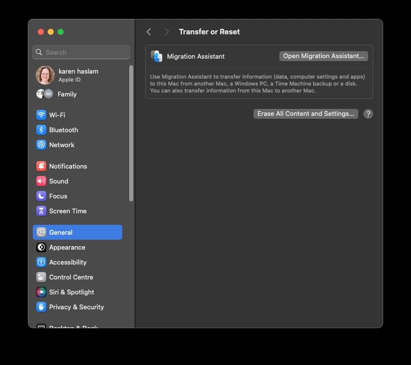我们在本文中详细解释了如何抹掉 Mac:如何抹掉 MacBook 或 Mac:恢复到出厂设置,我们建议你遵循该教程。如果你有带 T2 芯片的 Mac 或 M 系列 Mac,多亏了“抹掉所有内容和设置”选项,抹掉你的 Mac 非常简单。此设置过去位于“系统偏好设置”的菜单中,但随着“系统设置”的到来,它现在位于“系统设置”>“通用”>“传输或重置”中。
