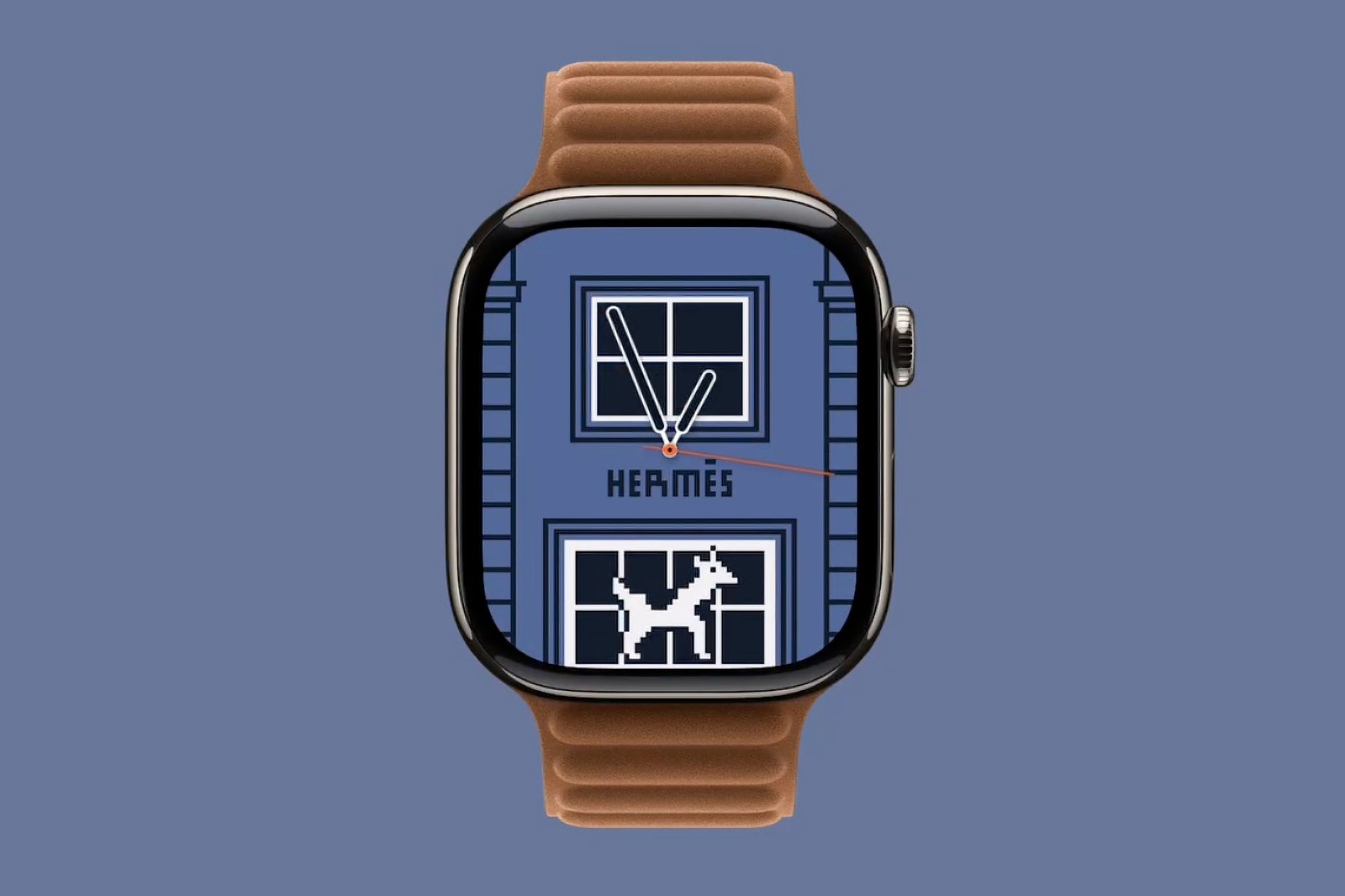 新款爱马仕手表配备提花针织表带和配套表盘,表盘图案由擅长位图艺术的艺术家Tibor Kárpáti设计,描绘了巴黎圣奥诺雷大街的爱马仕店铺。表带配有24款动态表盘,"全天候乐趣不断"。其中一款表盘特别设计了经典形象Clarus the Dogcow。