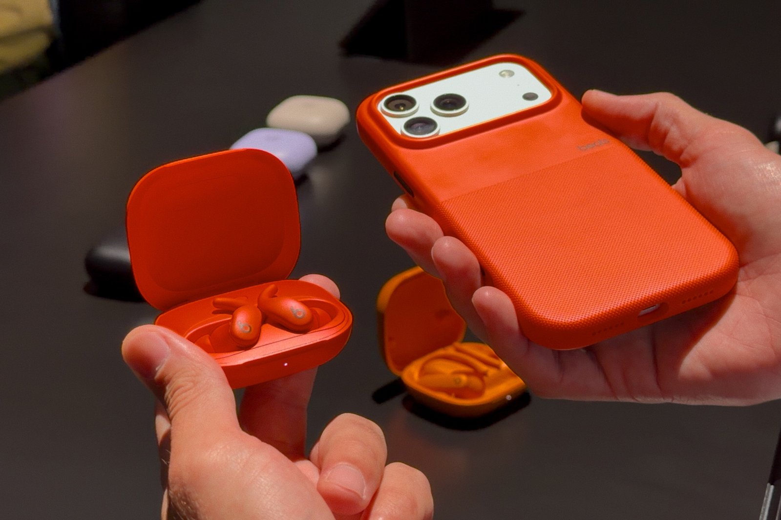 我询问舒瑟是什么促使Beats开发保护壳和线缆等配件,他的回答让我感到惊讶。本质上,制作配件的想法是由Beats为与艺术家合作设计的产品提供的专属线缆所激发的,例如与金·卡戴珊合作选色的Beats Studio Pro,随附颜色匹配的保护壳和线缆。“我们意识到我们非常擅长制作线缆,”他说。