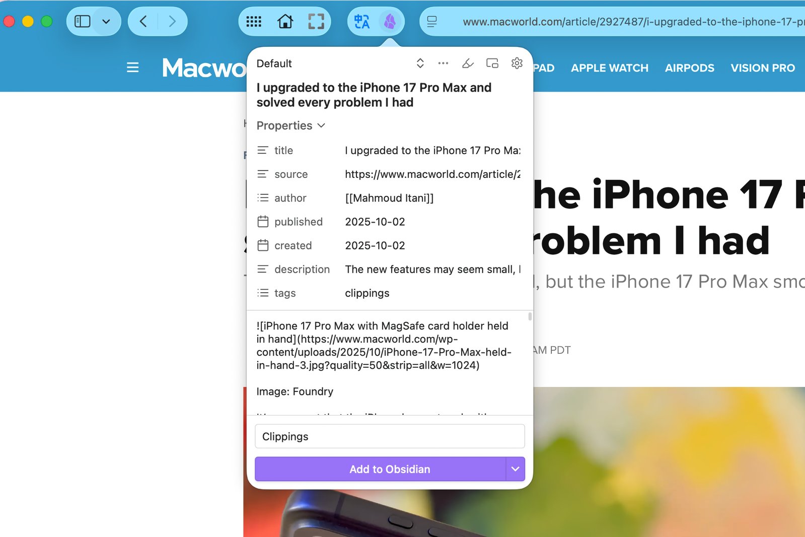 用Obsidian收集文章