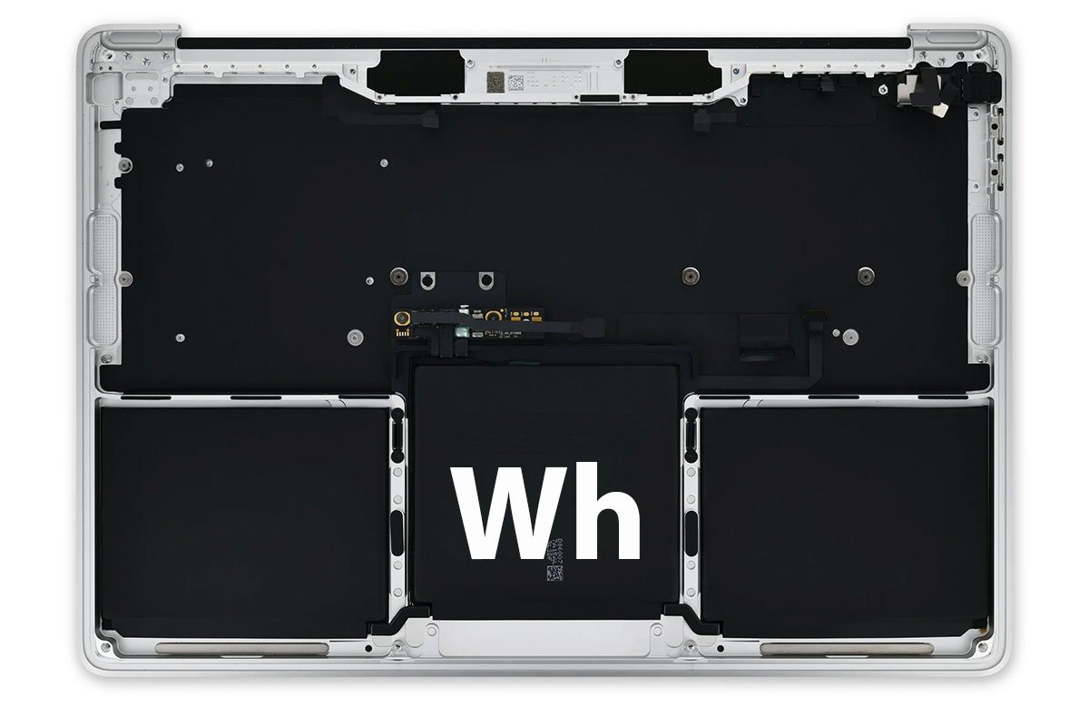 - 13 英寸 MacBook Air, M2: 52.6Wh