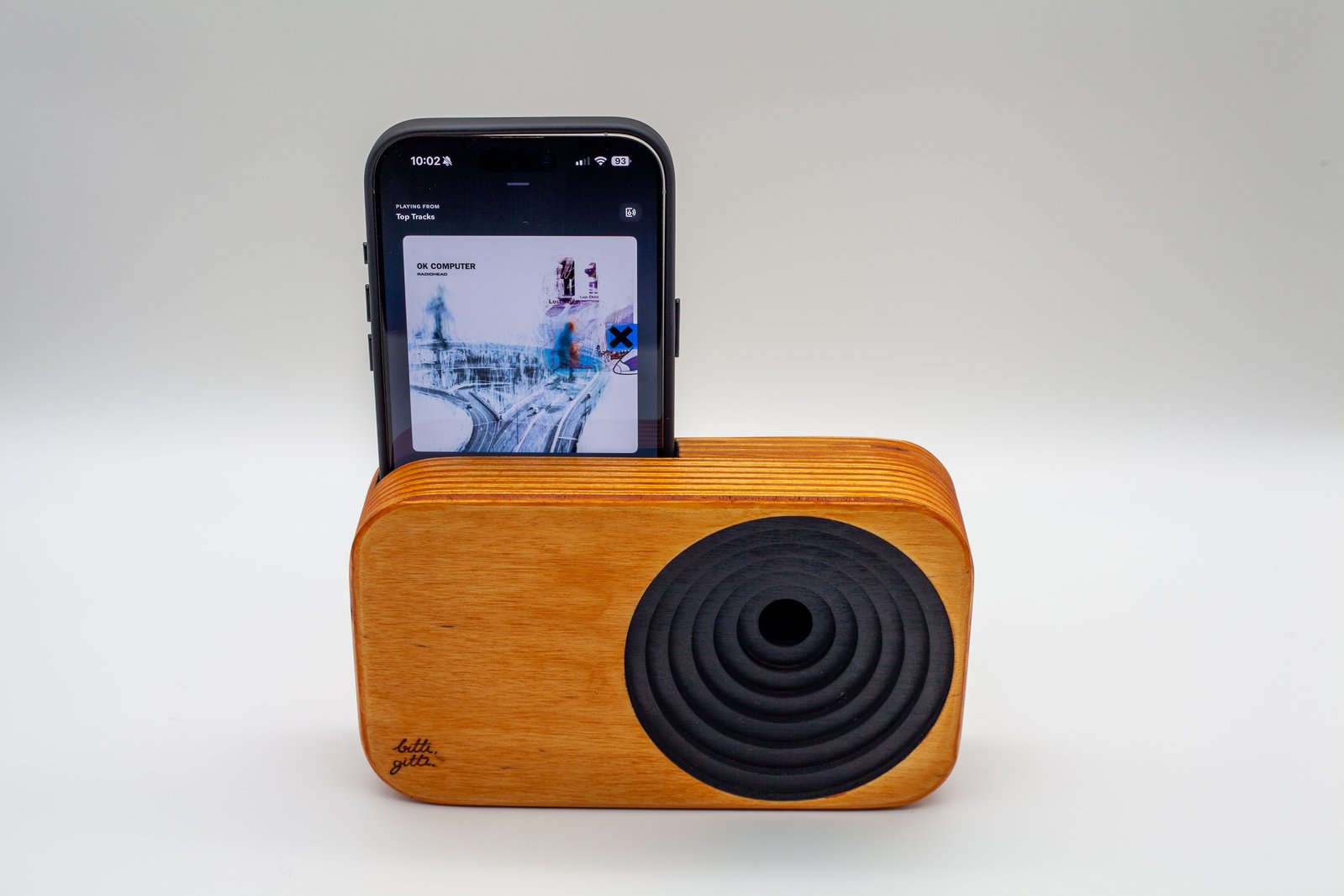 Z世代的另一趋势是回归本质。这个89美元的木质音箱完全没有电子元件,只是个盒子,靠七层雕刻环放大iPhone音频。把手机滑进去就行。但放大效果自然纯净。我播了各种歌手的音乐,高音量下的保真度令人印象深刻。我Z世代的女婿Blake说:“我天天都想用iPhone配这个音箱。”他尤其喜欢其极简设计。