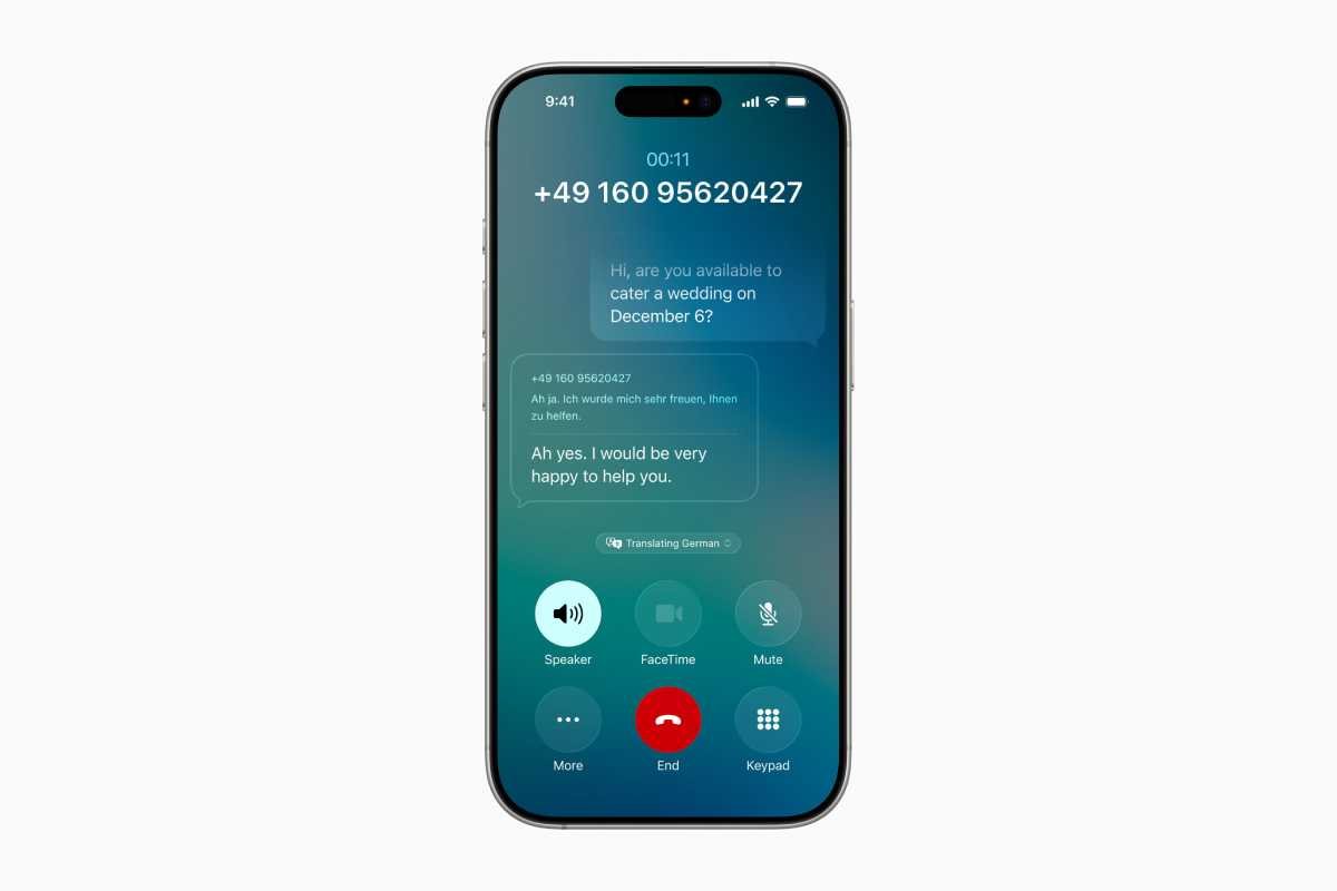 - 电话App全面升级:Apple Intelligence加持的语音信箱文字摘要、骚扰电话智能筛选、等待协助(只在排队第一时才提醒你接听)、实时语音翻译(支持英语、法语、德语、葡萄牙语、西班牙语),FaceTime同步提供翻译字幕,信息自动翻译文本,Apple Music歌词自动转为你的母语!