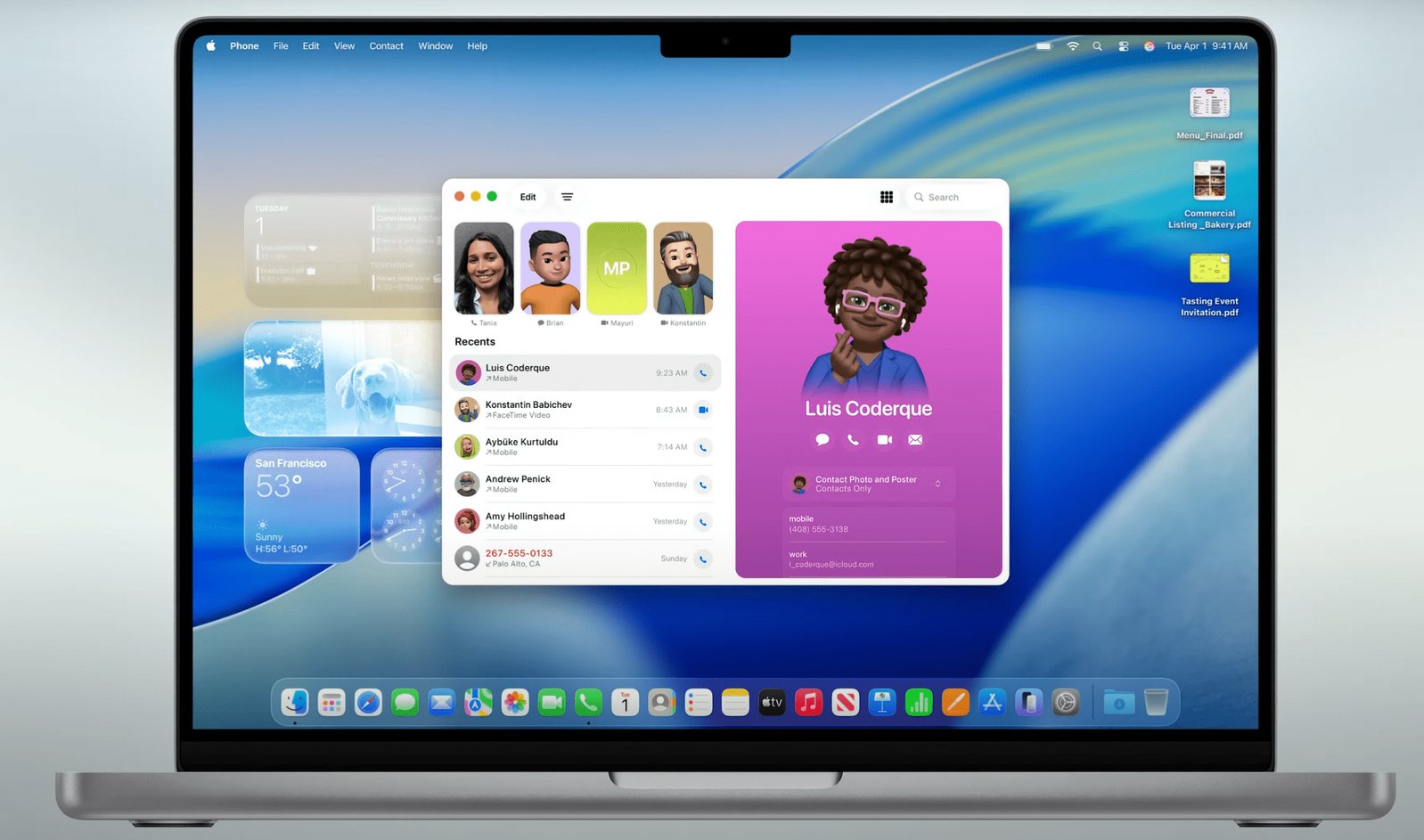 通过Phone应用,Mac可直接接听电话、管理语音信箱。新功能包括Call Screening拦截骚扰电话(陌生来电需先报姓名与事由)、Hold Assist挂机助手(自动检测等待音乐并可选择回拨)。
