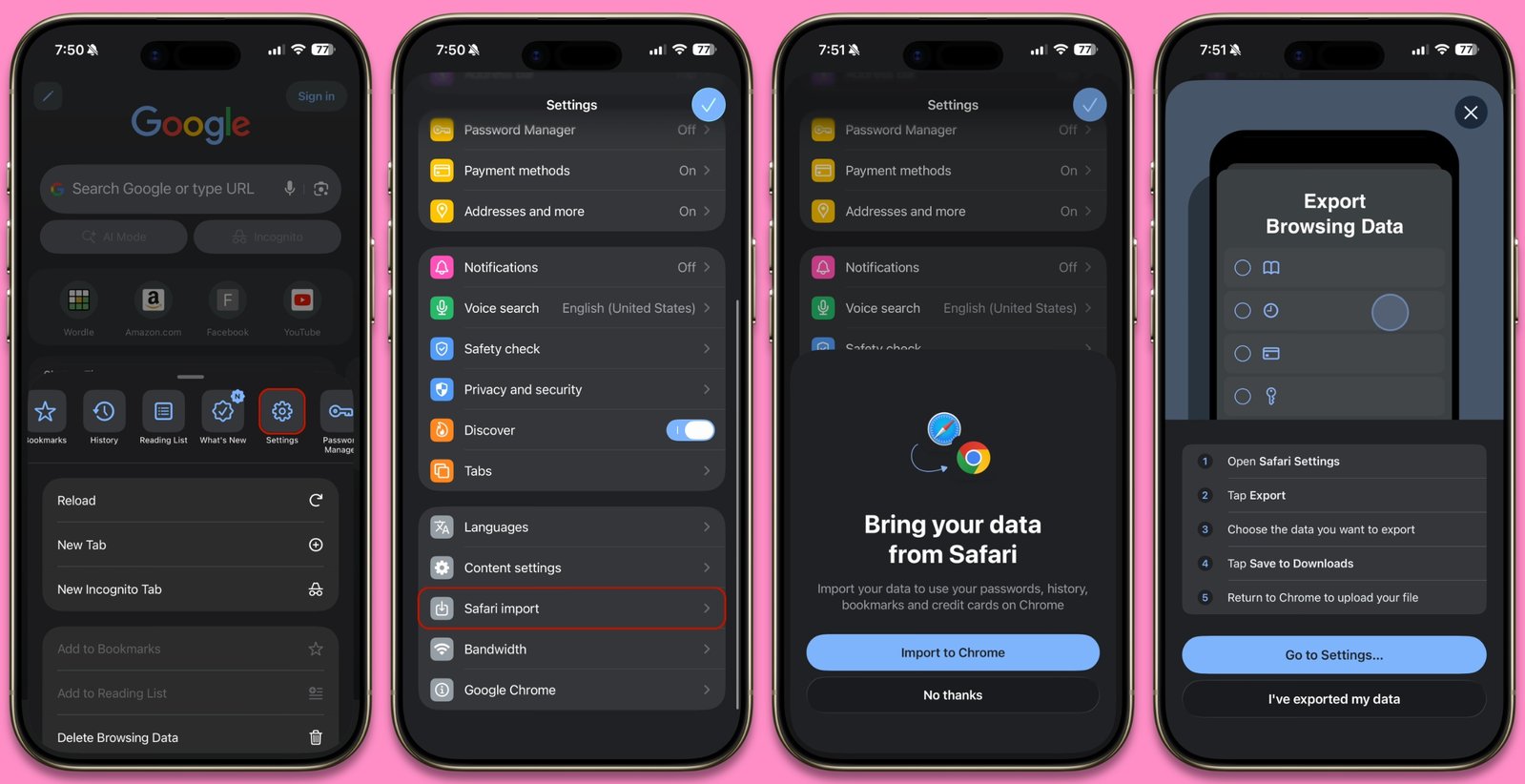 在最新Google Chrome iOS版Beta中,浏览器终于可以直接导入你的Safari浏览数据,实现无缝切换!据The Mac Observer发现,这一功能已出现在145版Beta中,通过Safari导出的文件进行导入。