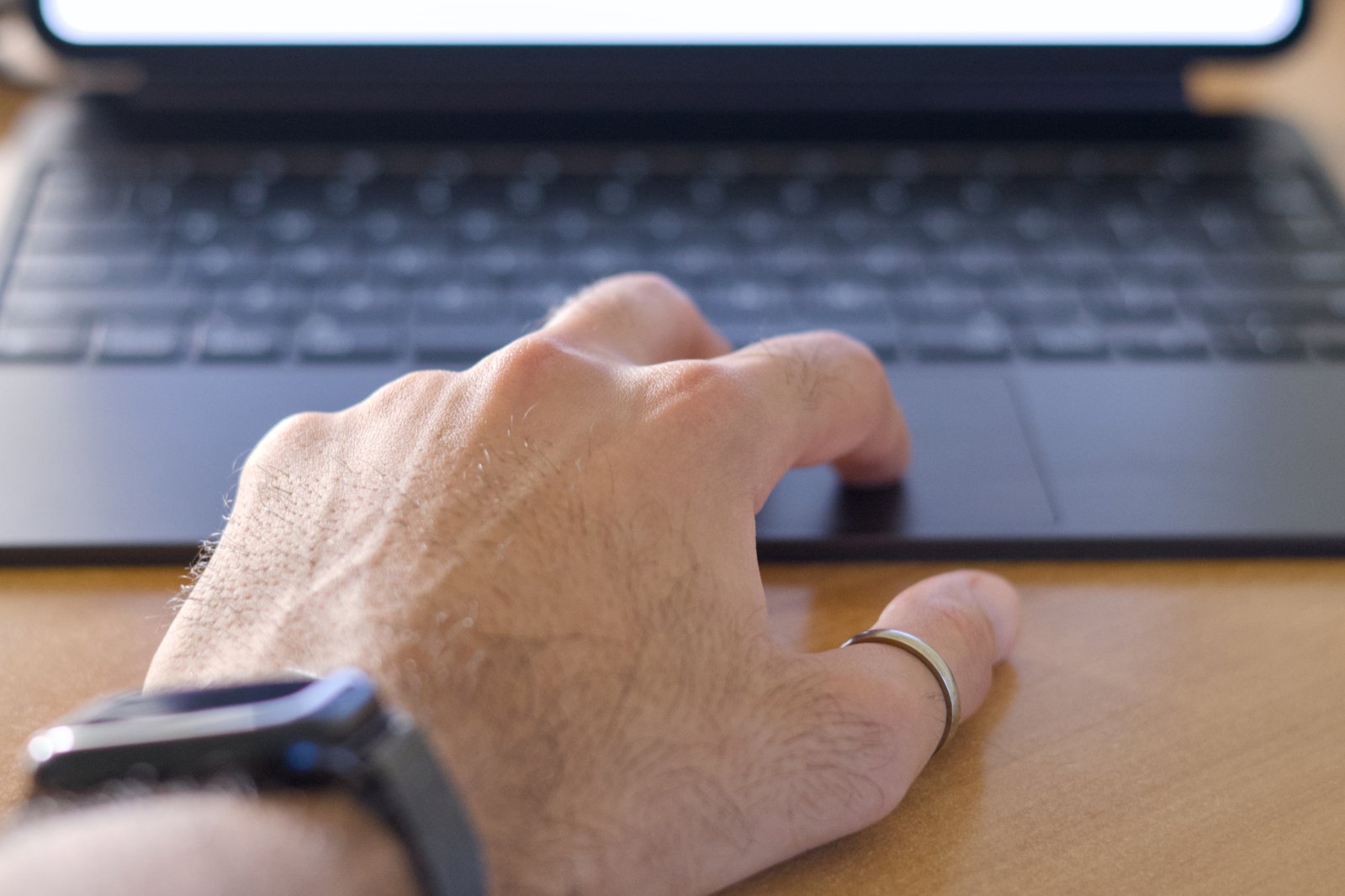 和其他键盘壳不同,Magic Keyboard自带一块支持多点触控手势的触控板。上一代只是勉强能用,新款直接升级成MacBook同级玻璃触控板,还加入了 haptic 触觉反馈。