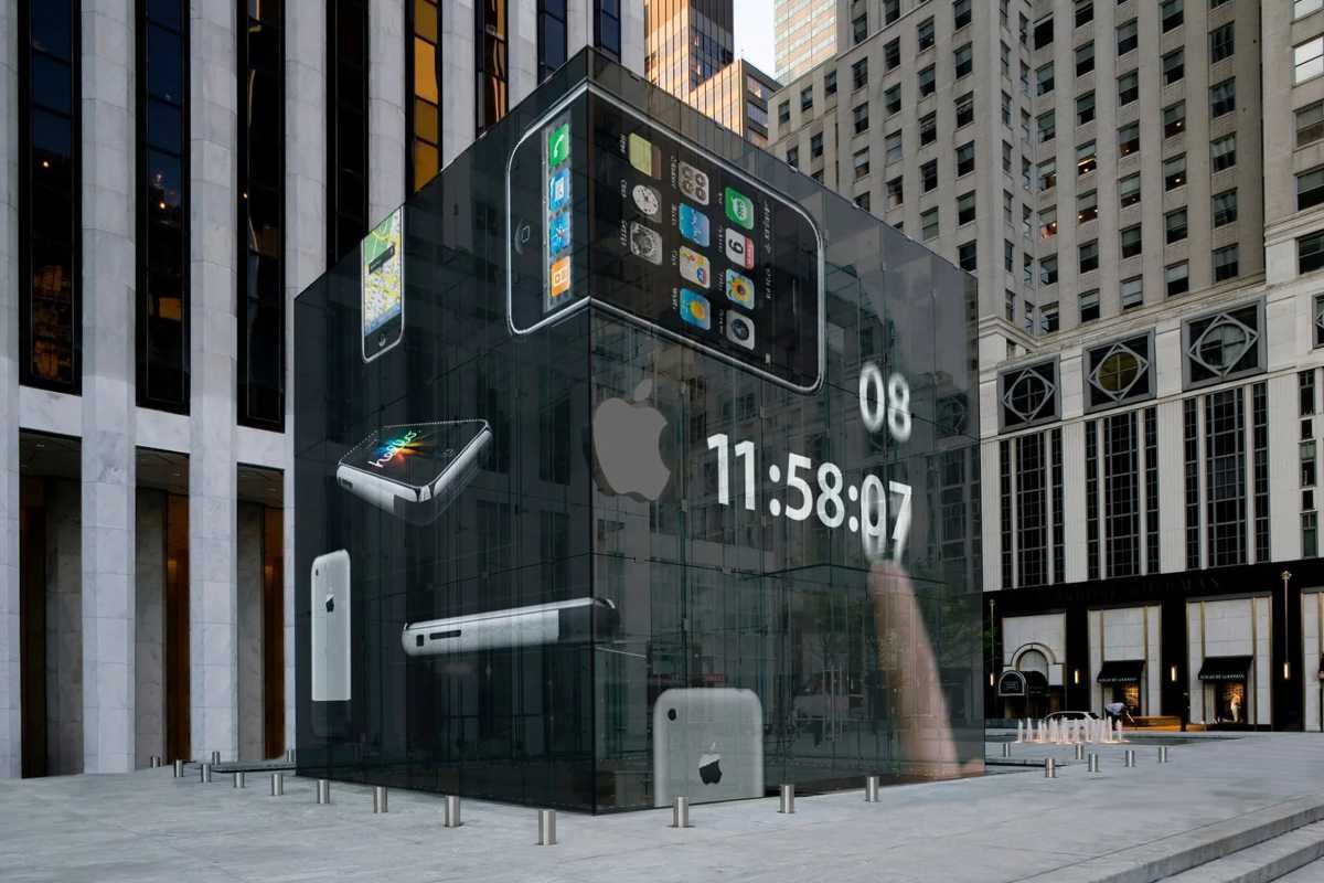 那时苹果已在1月正式公布iPhone,并在6月的WWDC上给出大量更新细节,第三场发布会很可能显得多余或策略上不必要。Stoa网站还展示了为第五大道苹果立方体准备的独特光影投影方案。