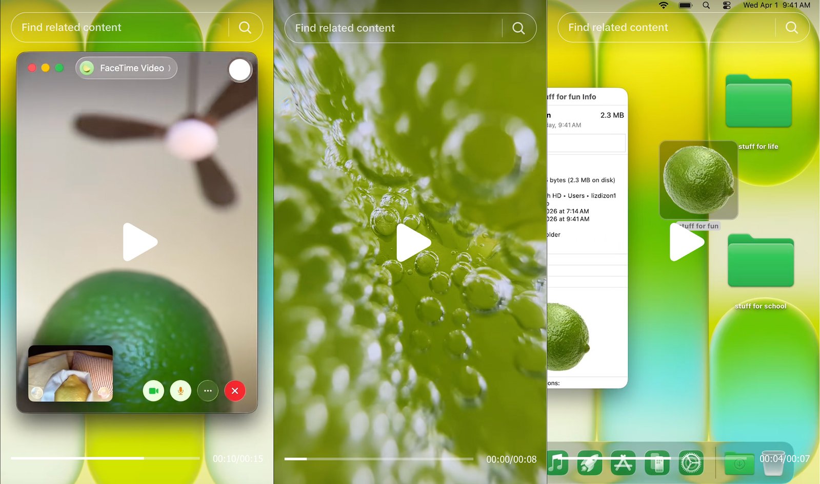 接下来的三条视频全部围绕青柠色——Neo最吸睛的配色展开。而呈现方式正是16岁以下孩子口中的“脑残级”迷因:狂喊“我爱青柠”、柑橘表面冒泡泡配上奇怪音效、还有青柠给柠檬打FaceTime的画面……