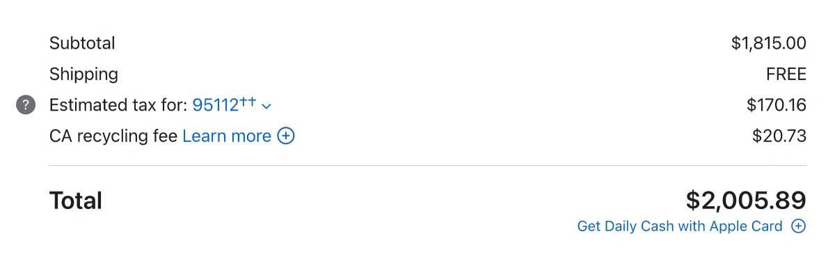 上面总价还没算Apple One订阅,也没算AppleCare。如果再加AppleCare One(覆盖MacBook、iPad、iPhone意外损坏),大概每月再加20美元左右。你也可以去Amazon或Best Buy找更便宜的价格,用Apple Card付款还能返不少现(50多美元)。总的来说,2000美元不到拿到这套配置,真的挺香的。