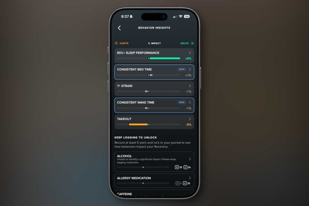 真正厉害的地方在于,Whoop会把你的健康数据和恢复情况,跟你填的这些问题关联起来。积累足够数据后,它就能告诉你哪些行为影响了你的恢复。