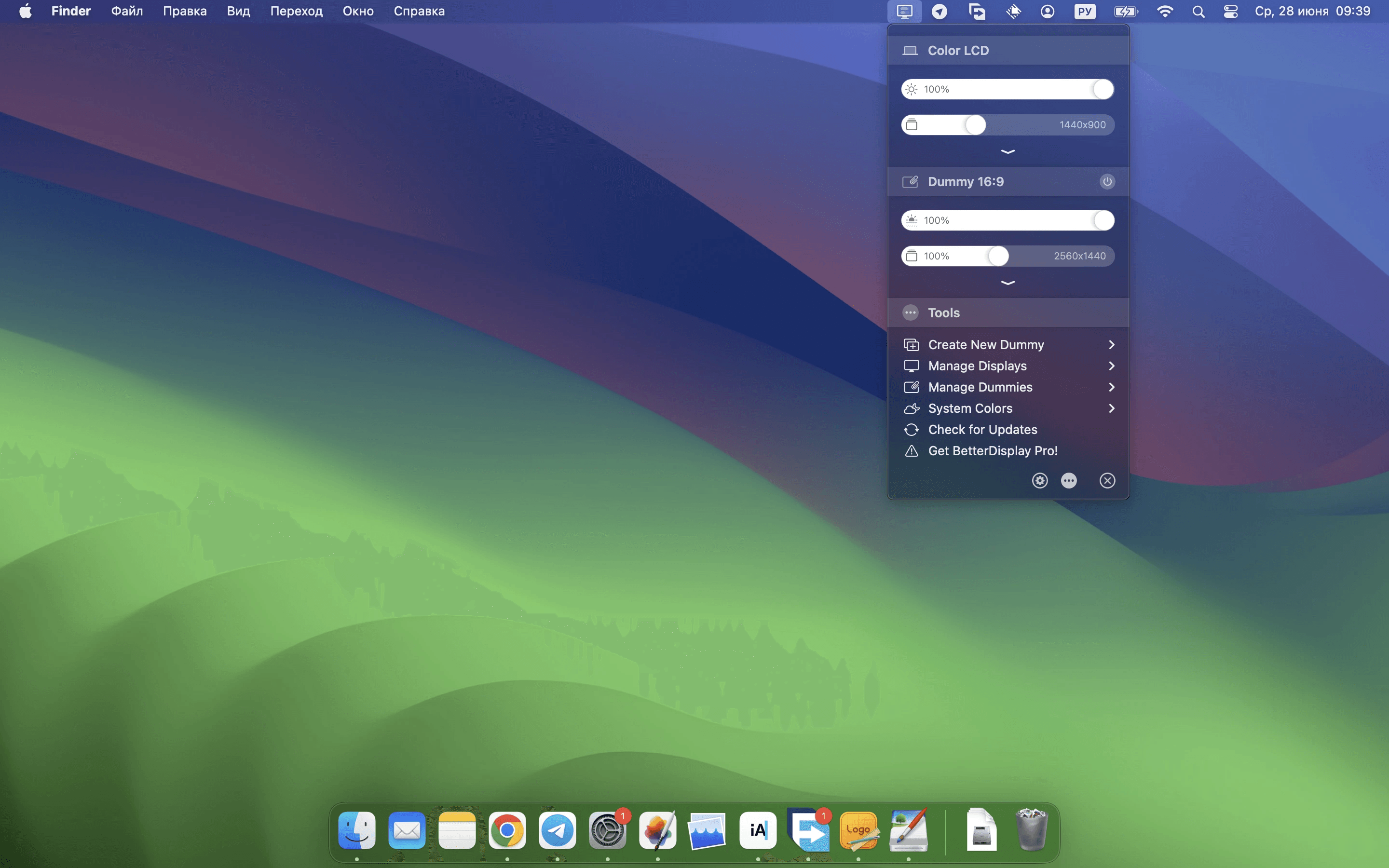 通过菜单栏中的滑块(或子菜单)轻松更改真实和虚拟显示器的分辨率。