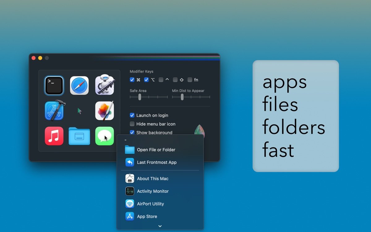 Charmstone for Mac是一款专注于提升用户生产力的快捷应用切换器,它巧妙利用空间记忆原理,让您通过简单的修改键组合和鼠标光标移动,就能瞬间启动应用或切换到已运行程序。这种设计大大减少了依赖Dock栏或Cmd+Tab的操作频率,帮助用户在多任务环境中保持流畅节奏。无论您是设计师、开发者还是日常办公者,Charmstone都能无缝融入macOS生态,提供直观高效的交互方式。其核心在于最小化学习成本,让新手也能快速上手,同时为资深用户带来更精细的自定义选项,如调整触发键位或图标布局,确保每一次切换都精准而自然。作为一款轻量级应用,它不占用过多系统资源,却能显著优化工作流,深受追求效率的Mac用户青睐。