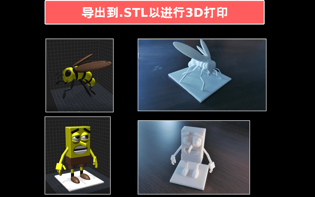 将您的 Claydo 作品导出到 3D 打印机或 Maya 和 Blender 等外部应用程序。