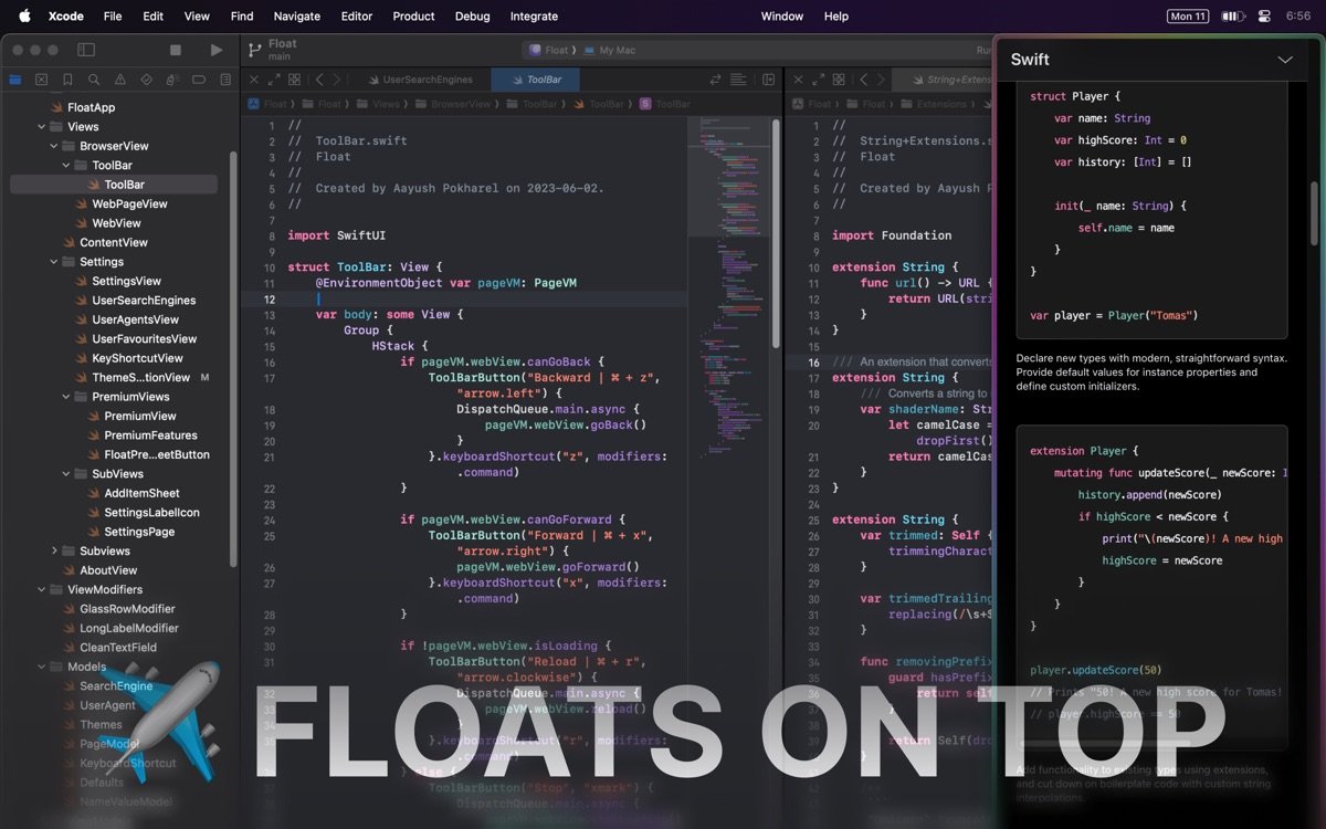 Float for Mac 作为一款创新的始终置顶浏览器,专为macOS用户打造,帮助在工作中保持关键网页可见,避免应用切换带来的中断。通过浮动窗口设计,用户可轻松查看参考资料、实时聊天或监控仪表板,同时保持其他任务流畅进行。这款浏览器强调隐私保护,默认阻挡广告和跟踪cookie,确保数据安全且浏览体验简洁高效。轻量级架构让其运行迅捷,不会占用过多系统资源,适合开发者、设计师和办公人士日常使用。