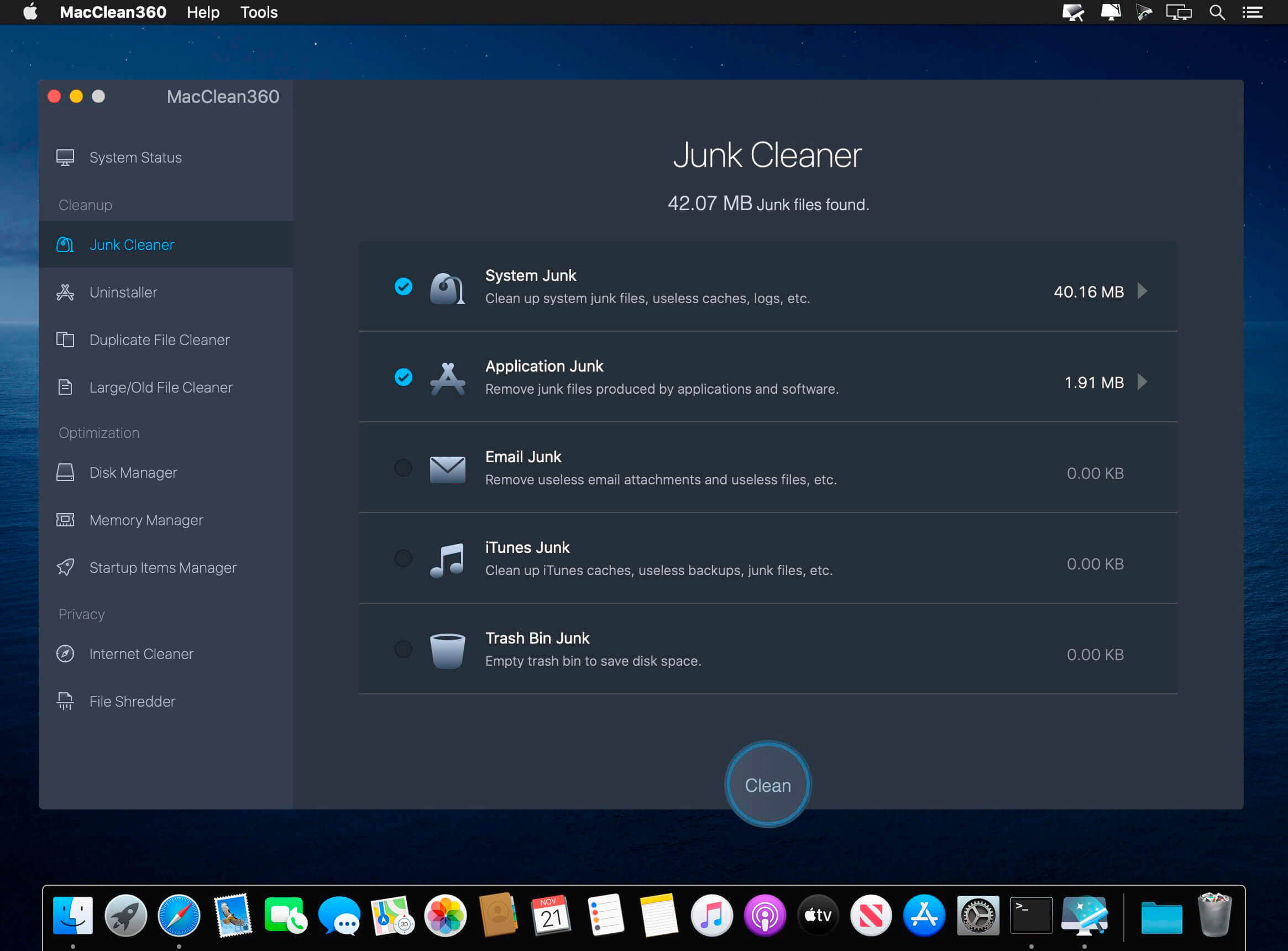 MacClean360提供9种工具,可帮助您清理垃圾,释放磁盘空间,优化/加速Mac。