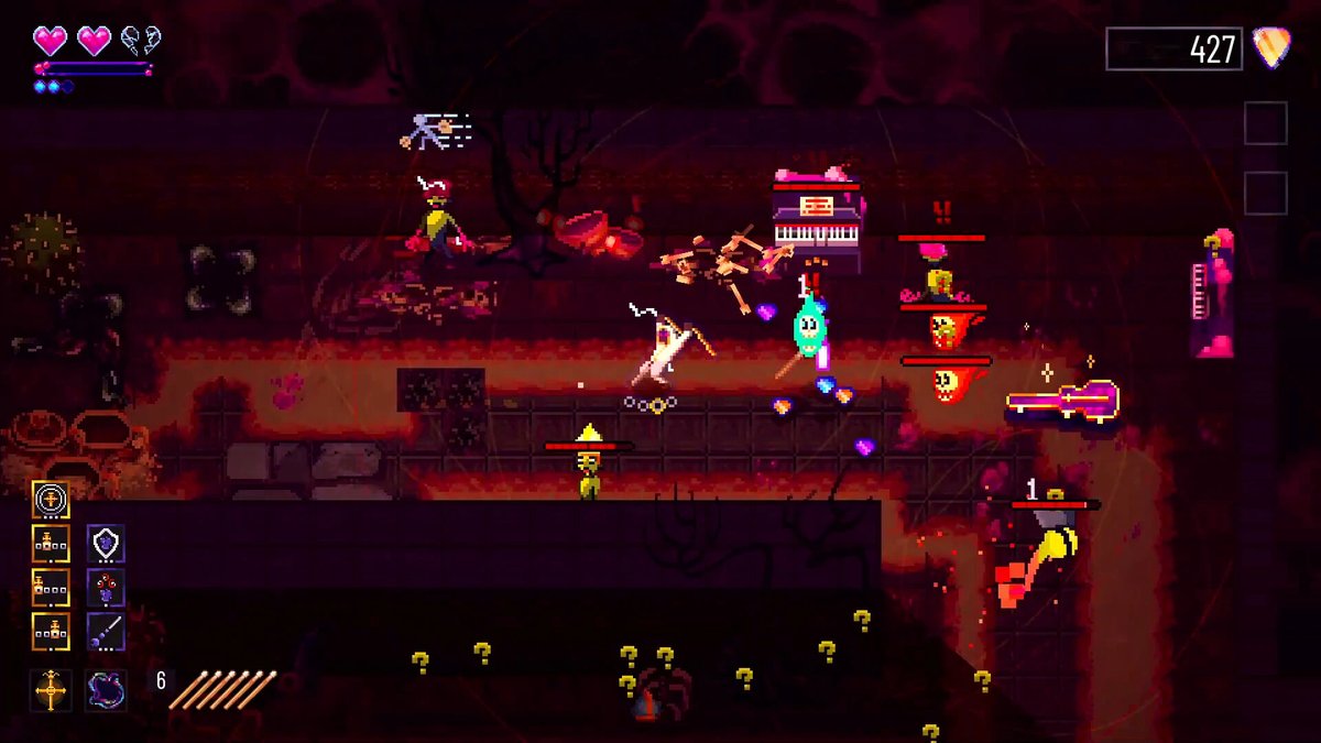 4. 解锁新鼓技和变奏曲目,通过多次尝试优化build,体验动作Roguelite的重复可玩性与像素肉鸽的深度策略。