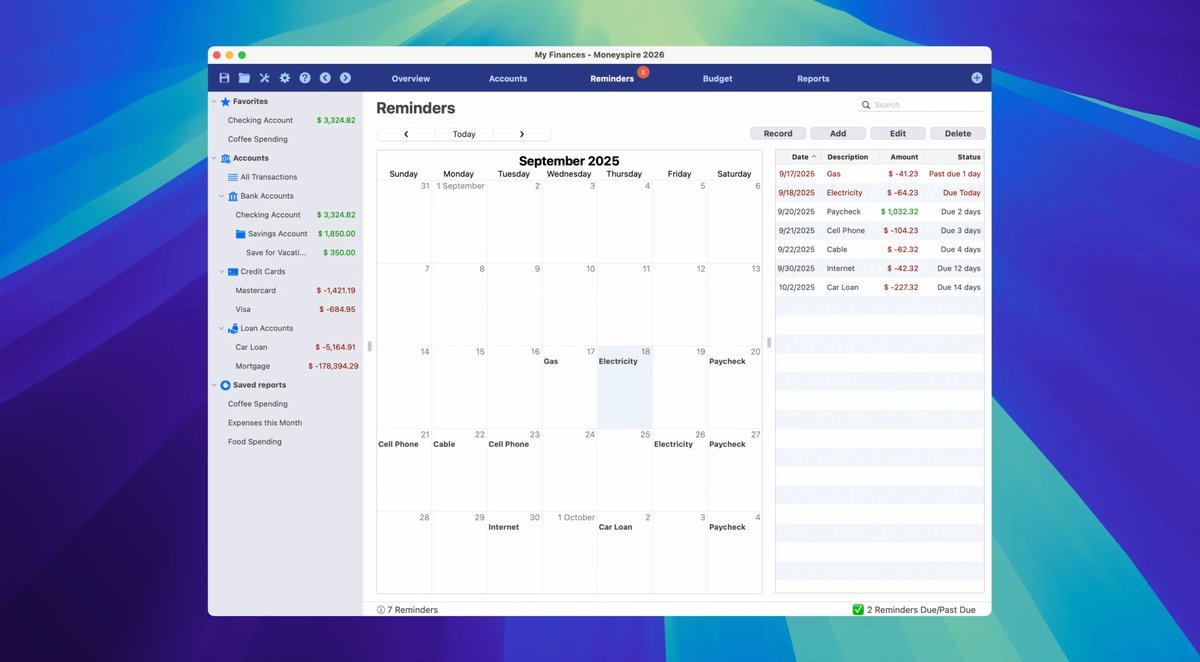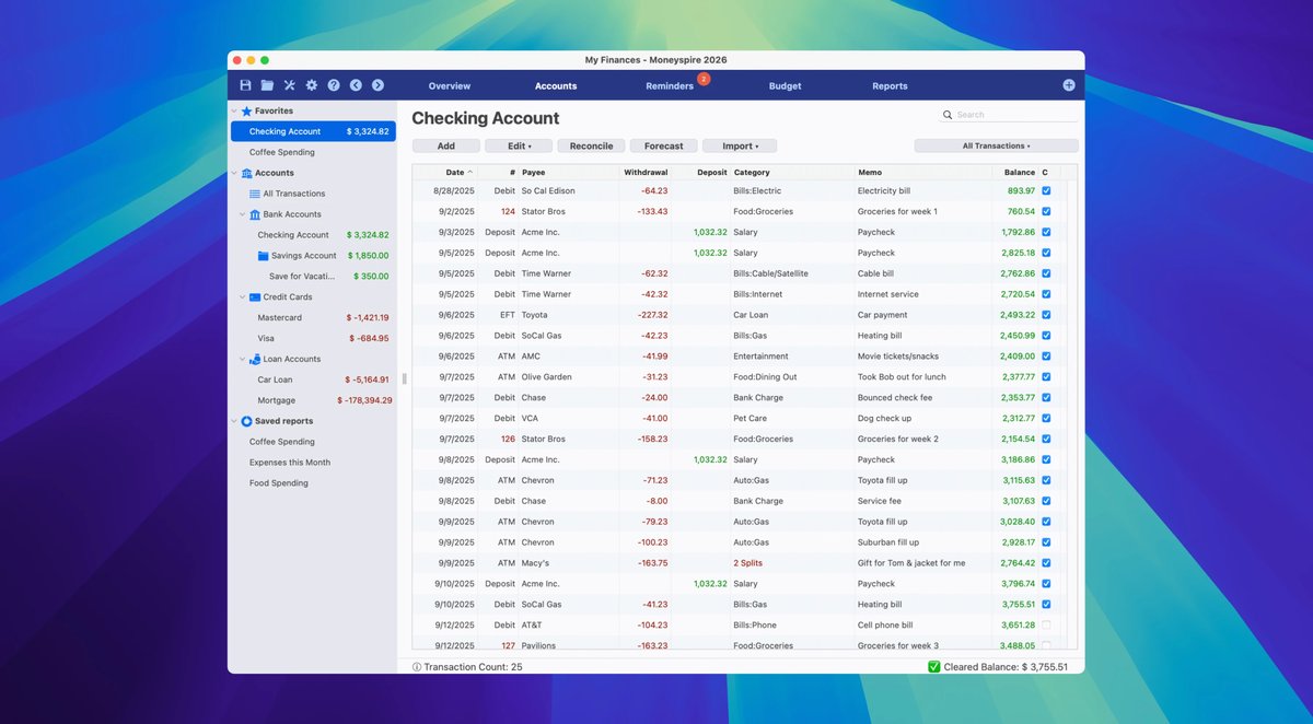 Moneyspire 2026 for Mac 是一款专为个人和小型企业设计的财务管理应用,它将所有财务数据集中于一处,让用户能够清晰查看账户余额、交易记录和未来支出。通过直观的界面和强大功能,这款软件帮助用户摆脱繁杂的财务琐事,实现高效的资金控制和规划。无论你是初次接触财务工具还是经验丰富的用户,Moneyspire 都能提供灵活的自定义选项,支持全球货币和多种导入格式,确保数据安全且易于操作。它不仅适用于Mac平台,还能无缝兼容Windows、Linux和Chromebook,实现跨设备同步,让财务管理随时随地进行。