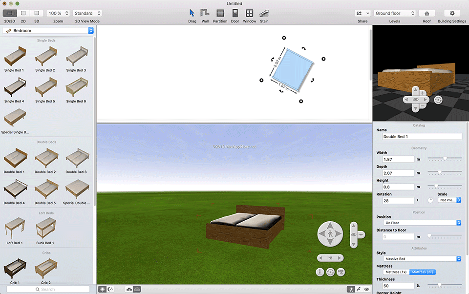 MyFourWalls 版提供了一个巨大的家具和材料的收集。所有项目可以定制你的口味 - 请选择您最喜欢的项目,调整其高度,宽度,抽屉或架子上的号码,由不同的材料和设计方案选择。白天和夜间模式,并选择单个灯开启或关闭,以比较不同的照明选项之间切换。如果房间似乎是太黑了,只需添加一个或两个灯。使用设置播放,直到你满意你所看到的。 MyFourWalls 版 3D视图中注册所有实时变化,所以你可以尽快的看到你的空间氛围如何变化,为您重新安排灯具或家具带来实感。MFourWalls for Mac是一个易于使用的家庭规划工具,让您在新的设计中,根据你的创意和喜好选择现有空间并设计出一个全新的家,包括内部的桌椅、家具设计。