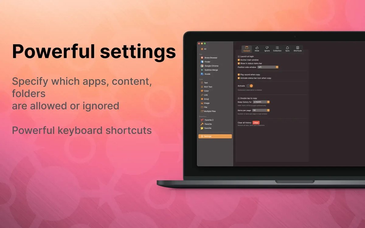 2. 自定义集合分类,允许用户根据需求组织文本、图像、链接等剪贴板项目,便于内容管理。