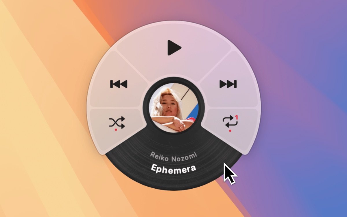 4. 内置音乐遥控器,支持 Apple Music 和 Spotify 播放控制,直接在饼状菜单内调整曲目和音量。