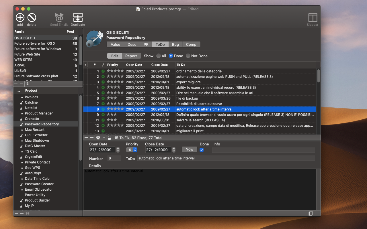 Product Manager 2.6可以从不同的角度管理公司产品。Product Manager可以用于不同的产品类型,以管理与产品的改进,发行和营销相关的活动。