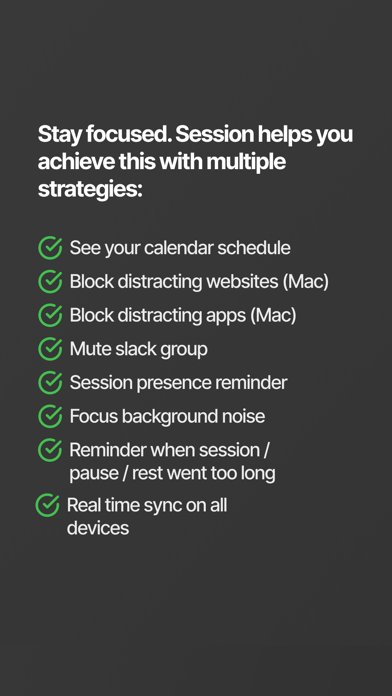2. distractions阻挡:在Mac上自动屏蔽 distracting 网站和应用,如社交媒体或娱乐平台,会话结束后恢复访问,提升专注度。