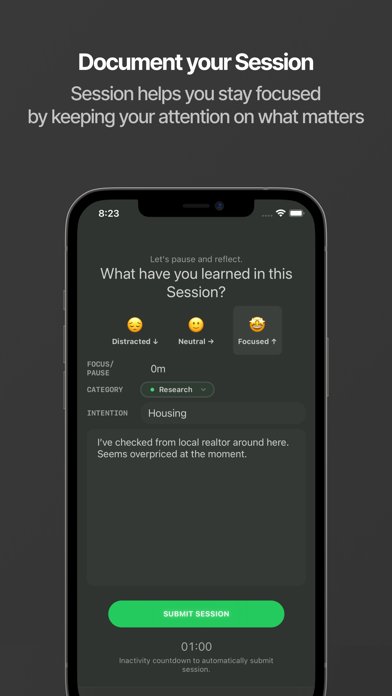 4. 时间追踪与反思:记录每会话进度,提供心情、生产力和笔记反思功能,便于用户分析并优化时间分配。