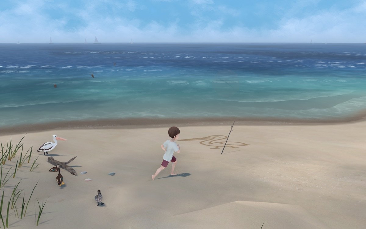 3. 探索开放海滩环境,收集物品并重温经典书籍情节,享受放松的叙事冒险体验。