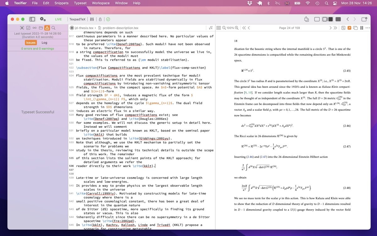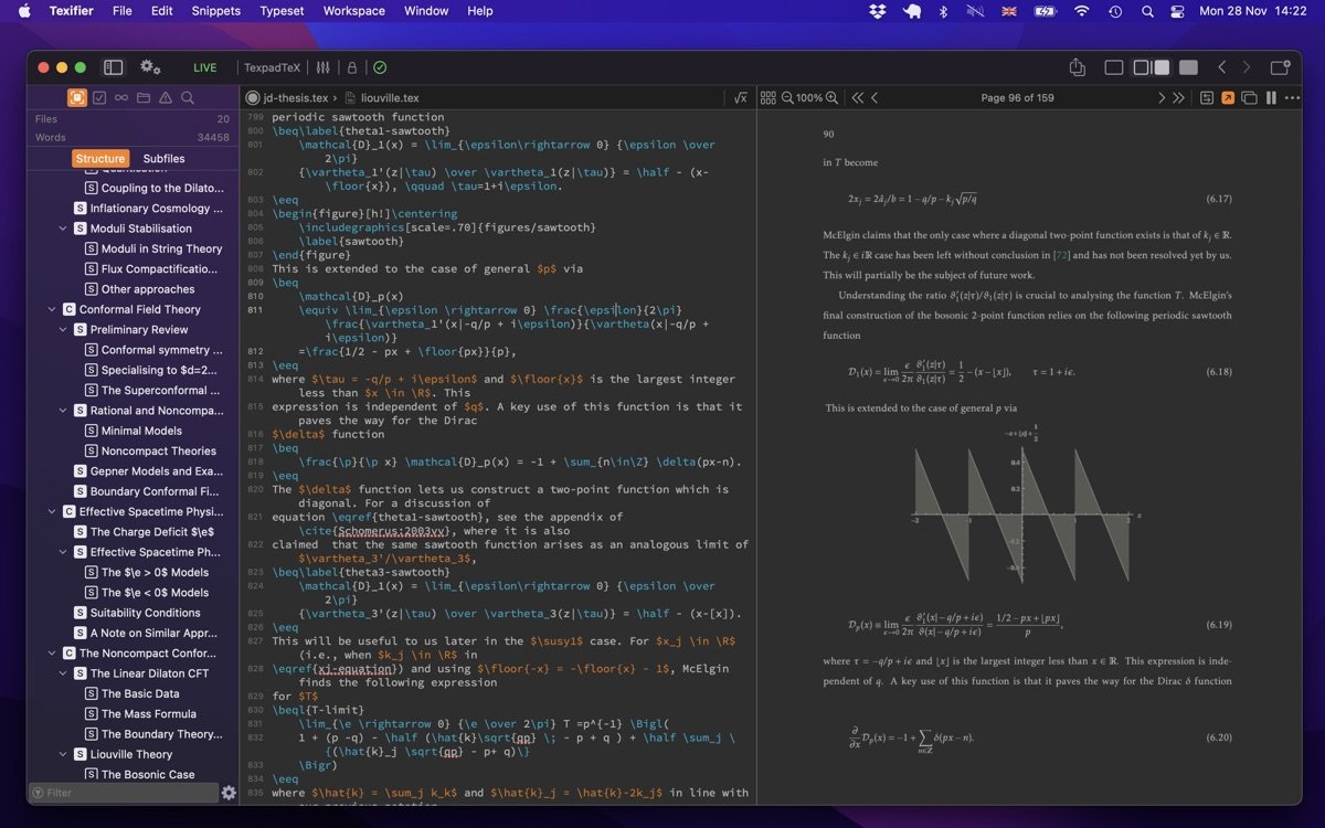 Texifier for Mac 是一款专为LaTeX用户设计的编辑器,以其简洁界面和强大功能深受欢迎。它支持从简单笔记到复杂论文的多文件项目管理,通过内置TexpadTeX排版引擎实现实时PDF预览,让用户在编辑过程中即时查看输出效果。无论是语法高亮、自动补全命令,还是全局搜索替换,Texifier for Mac 都注重提升LaTeX编写效率,帮助研究人员、学生和专业人士快速创建高质量文档。同时,它兼容Markdown和Plain TeX,扩展了应用场景,确保LaTeX编辑过程流畅无阻。