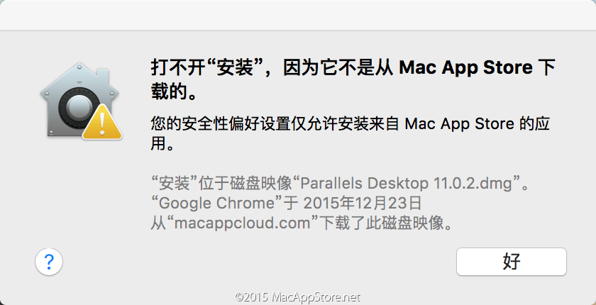 新入手了台Mac电脑,想尝试一下Mac OS X系统,第一件事便是给新Mac安装软件了。在 macapp.org 上下载了软件开始安装,双击安装文件,弹出提示“打不开,因为它不是从Mac App Store下载的”或“已损坏,您应该将它移到废纸篓”