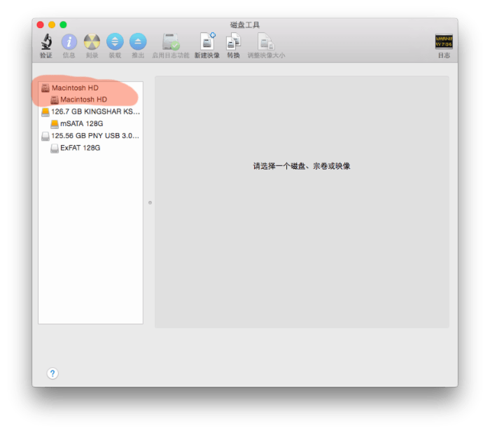 首先,确定你的系统是OS X Yosemite 10.10.x。然后,打开“磁盘实用工具”,如果你看到启动磁盘的显示为2个Macintosh HD(如下图),那么基本上你已经在用Core Storage了。